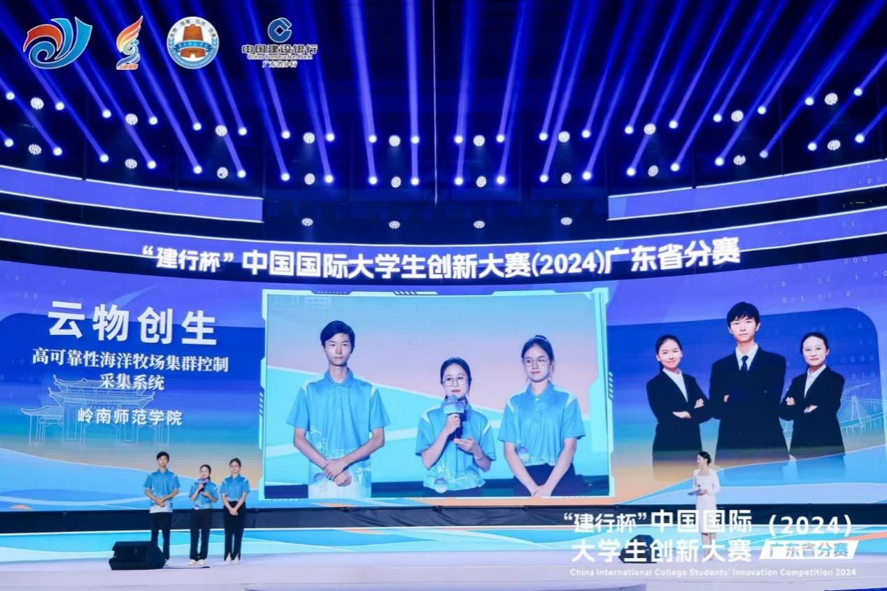 8月20日-21日,“建行杯”中国国际大学生创新大赛(2024)广东省分赛现场决赛(以下简称“大赛”)在岭南师范学院寸金校区成功举行,来自广东省各个高校的代表团队欢聚一堂,锋芒毕露,竞争激烈,我院“云物创生——高可靠性海洋牧场集群控制采集系统”项目过关斩将,获得金奖,最终闯进决赛,斩获季军,同时我院“智汇海岛—‘大手拉小手’共筑科学梦”项目表现优异,荣获金奖。