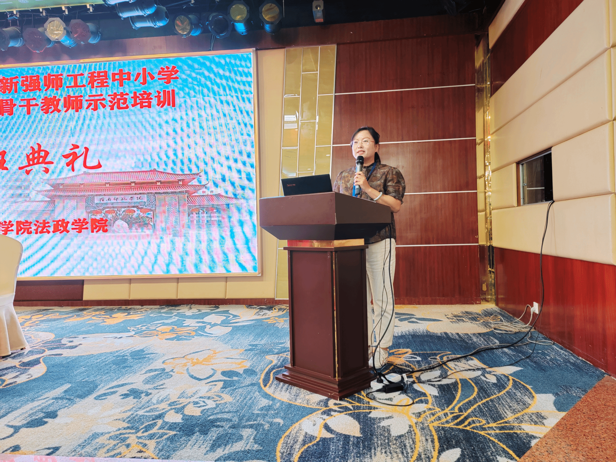 随后,陈红桔从项目背景、总目标和具体目标、培训形式等方面详细介绍了本次培训的方案。陈红桔指出,总目标是坚持师德为先,能力并重,实践导向,打造一支具有良好职业道德、掌握系统专业知识、拥有熟练教学技能的骨干教师队伍。具体目标则包括使全体学员成为所在学校所在学科的国家安全教育骨干,发挥示范带领作用;通过训后跟踪指导,培养参训教师为即将开展的国家安全教育名师工作室做准备;以及通过对学员申报课题、论文写作的指导提升参训教师的国家安全教育学科教学研究水平。