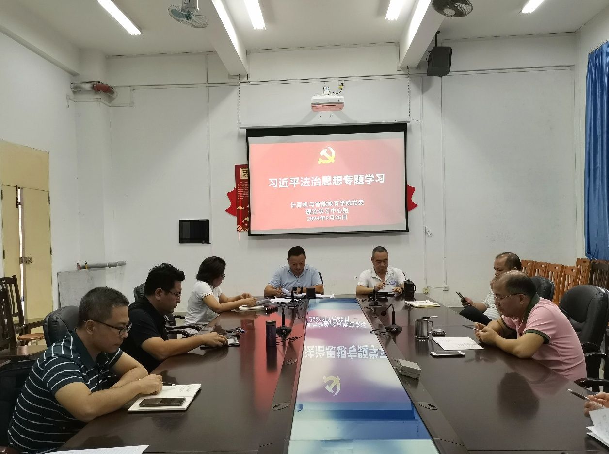 9月25日,计算机与智能教育学院党委理论学习中心在综B101会议室组召开专题学习会议,深入学习习近平法治思想,旨在进一步提升党员干部的法治意识和法律素养,为学院各项工作提供坚实的法治保障。会议由计算机与智能教育学院党委书记李海文主持。
