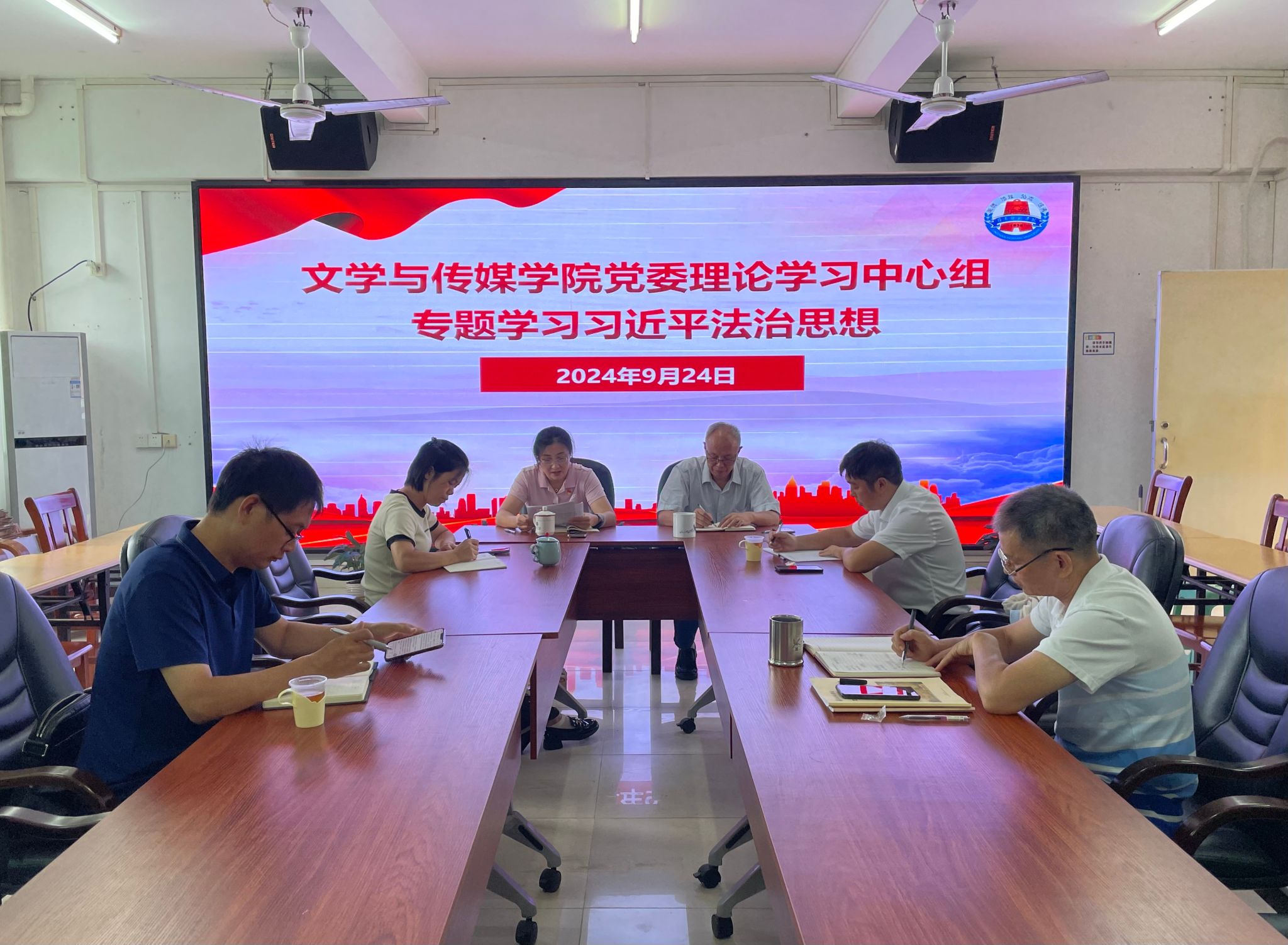 9月24日,文学与传媒学院党委理论学习中心组举行会议,专题学习贯彻习近平法治思想,提出相关贯彻意见,并研究进一步完善学院各项制度建设有关工作。