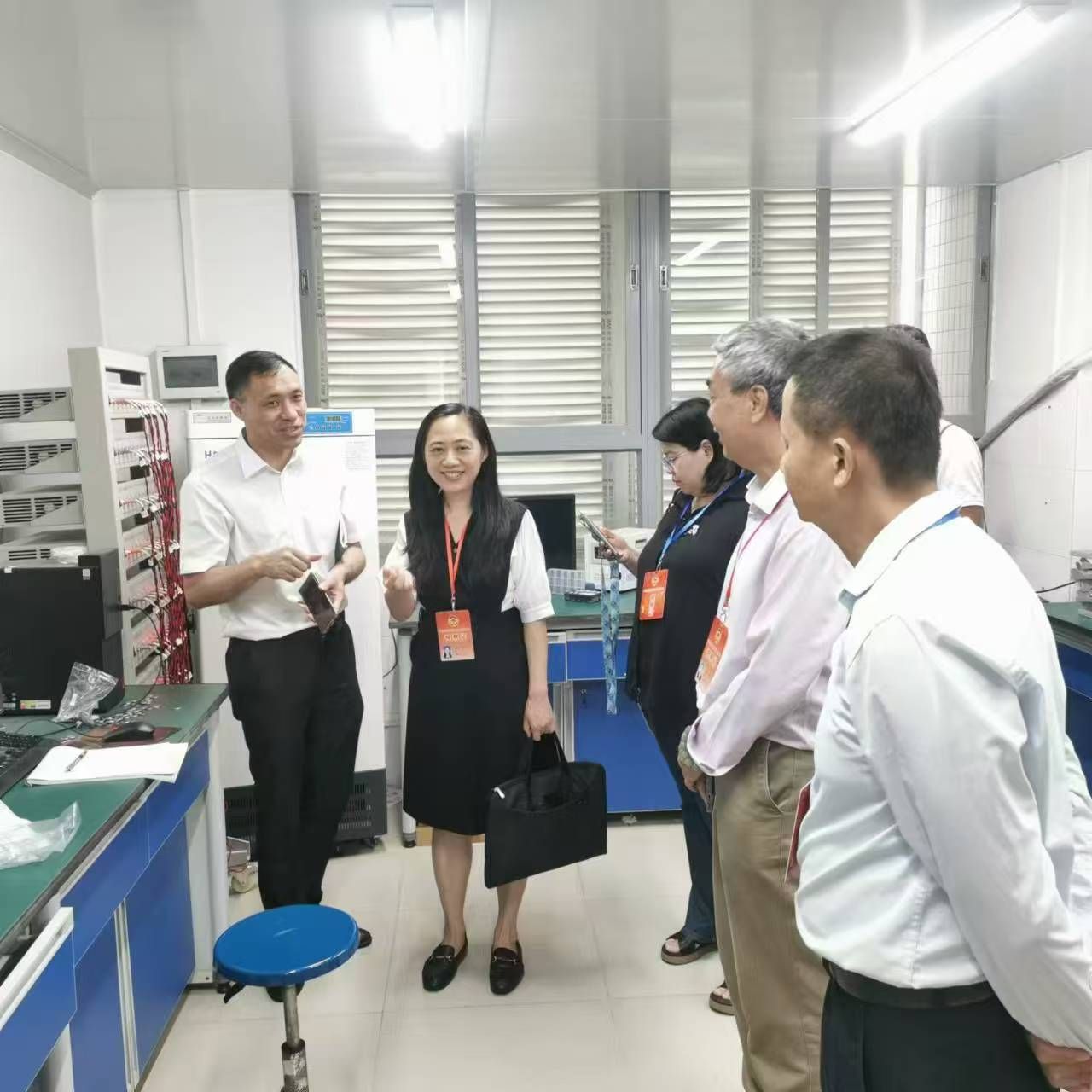 座谈会后,调研组还参观了化学院实验室,周小松作了实验室有关情况介绍。