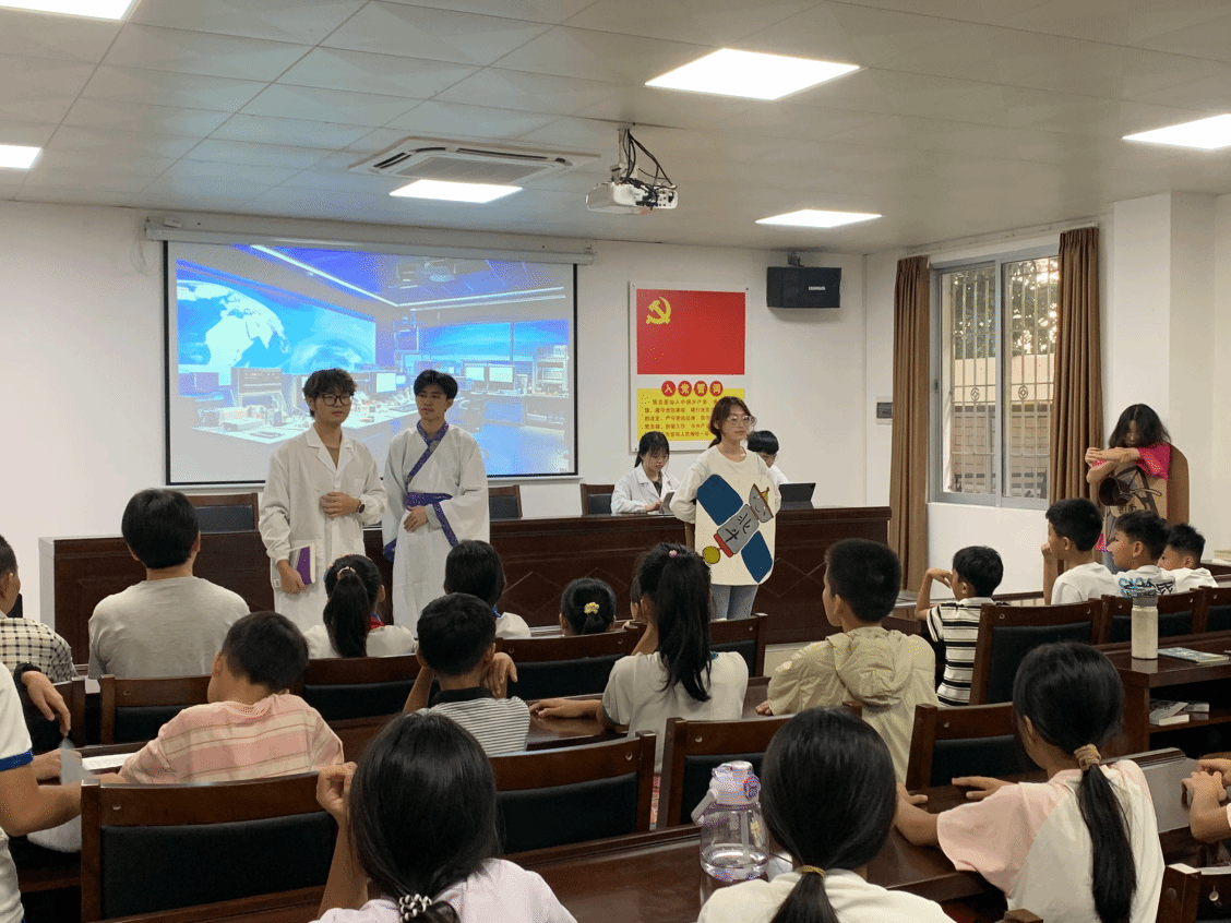 开班仪式上,物理科学与技术学院带来的科普剧《司南北斗照亮千年航道》,生动展示了古代科技的辉煌与智慧。这不仅是对传统文化的传承,更启迪着孩子们科学里蕴藏的奥妙。孩子们被剧情深深吸引,眼神中充满了好奇和激动,现场爆发出热烈的掌声。外国语学院和教科院的志愿者先后带领孩子们共同朗诵《中国少年说》、合唱《稻香》。活动中,志愿者还进行了禁毒宣传,希望通过这一环节增强孩子们对毒品危害的认识,远离一切有害物品,保护自己,健康茁壮地成长。