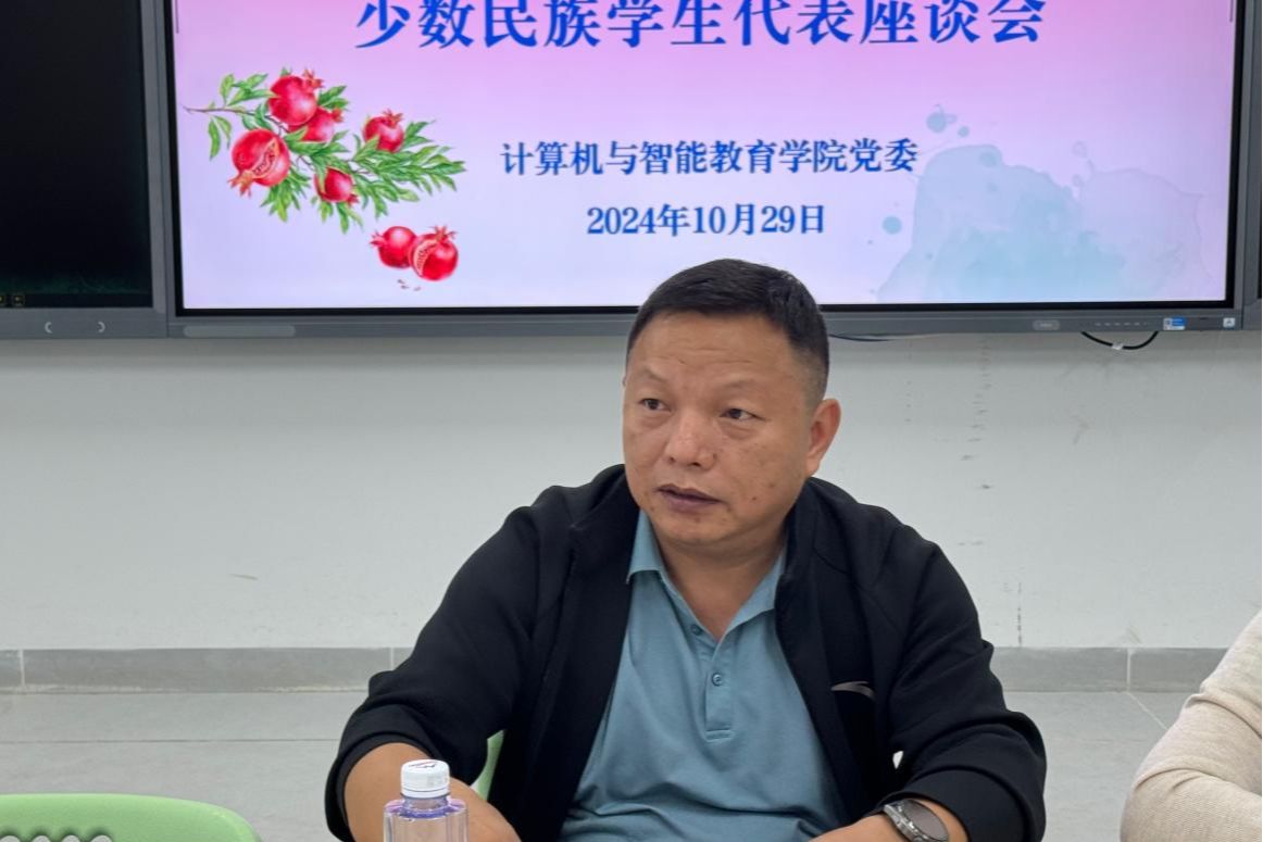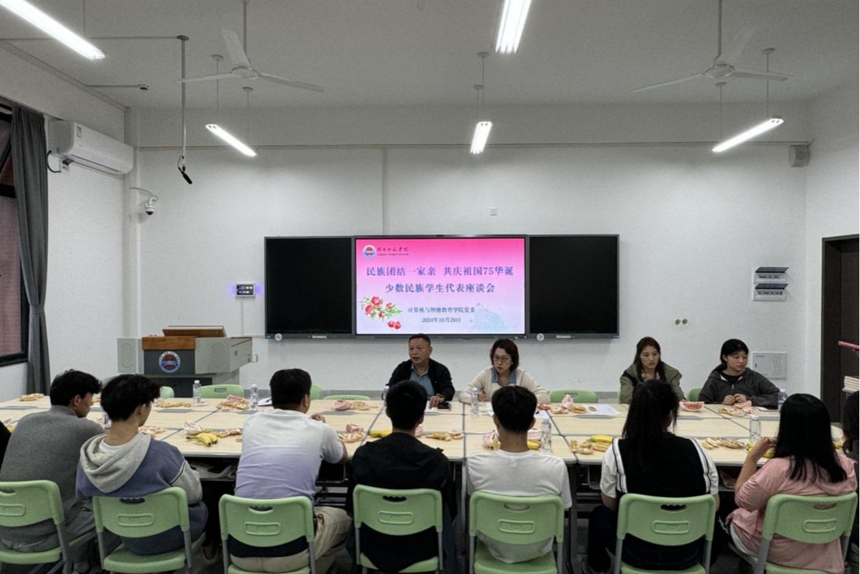 为弘扬民族团结精神,关心关注少数民族学生的健康成长,深入了解少数民族学生思想、学习及生活情况。10月29日,计算机与智能教育学院于湖光校区笃学楼304室开展少数民族学生代表座谈会。计算机与智能教育学院党委书记李海文,副书记陈明娟,辅导员张茜、邓海波,2022级、2023级少数民族学生代表及2024级少数民族新生参加了此次座谈会。会议由张茜主持。