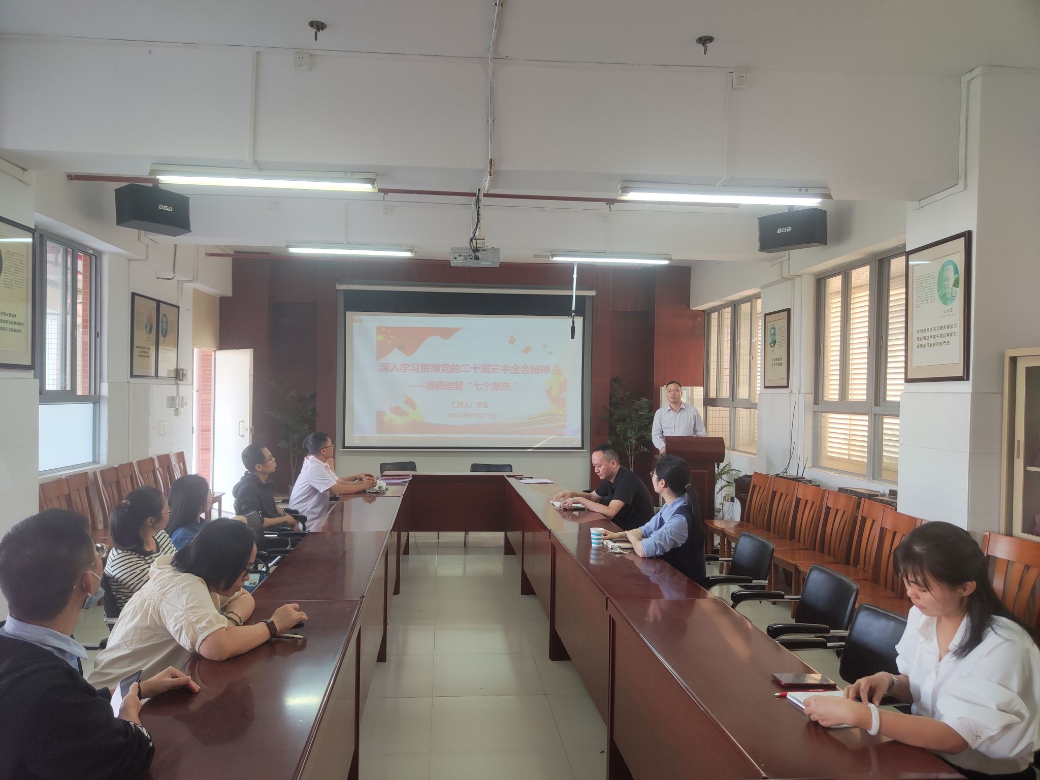 为深入学习贯彻党的二十届三中全会精神,深刻领会、准确把握全会精神的核心要义、丰富内涵和实践要求。近日,化学化工学院教工第三党支部在教四D305室举办学习贯彻党的二十届三中全会精神专题党课。支部书记罗金以“深入学习贯彻党的二十届三中全会精神——准确理解‘七个聚焦’”为题宣讲党的二十届三中全会精神,学院副院长周中流、支部全体党员参加会议。