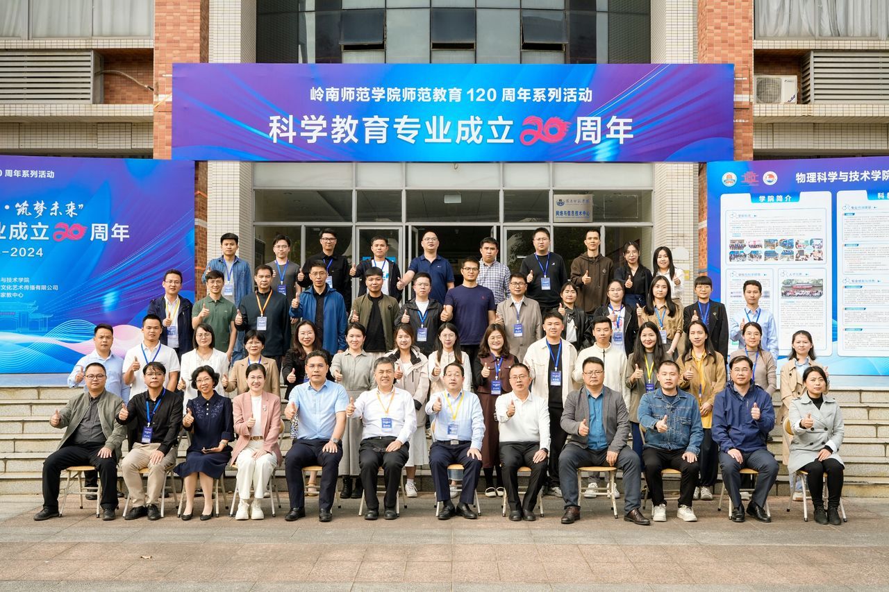百廿载栉风沐雨,弦歌继薪火;二十年耕耘赋荣芳,春华秋实。11月23日下午,岭南师范学院师范教育120周年系列活动之科学教育专业与中小学科学教育高质量发展分论坛暨科学教育专业成立20周年庆典,于综合楼A栋国际会议厅举行。参与会议的有省内开设科学教育专业的院系领导和专业负责人、湛江市科协领导、岭师校长办公室主任、物理学院党政领导班子成员和科教专业校友及师生代表。会议分别由教务处副处长黄桦、物理科学与技术学院副院长田春华主持。