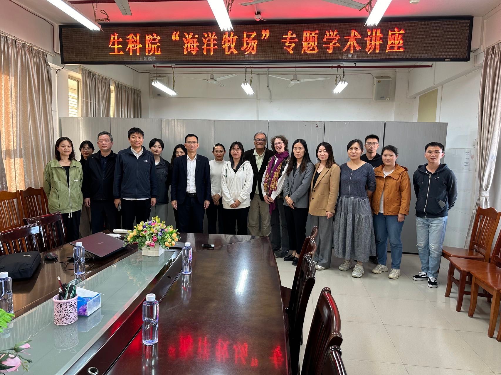 11月29日,生命科学与技术学院邀请了阿尔加夫大学终身教授、CCMAR海洋研究中心(欧盟重点实验室)主任Adelino Canario教授及南方海洋科学与工程广东省实验室(湛江)研究员赵娜在教4-D505举办“雷阳大讲坛-海洋牧场专题” 学术讲座。生命科学与技术学院院长刘锴栋教授主持,副院长王锂韫教授及30余名师生参加。