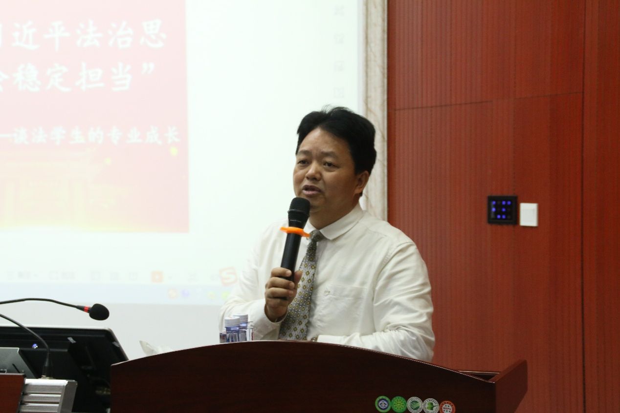 会上,李德深首先对岭南师范学院申硕成功、颁布校歌、发布红色校史书籍以及迎来师范教育120周年表示热烈祝贺,并为校友尹宁的到来表示热烈欢迎与由衷感谢。接着,李德深详细介绍了尹宁的履历与成就,并向同学们强调要以优秀校友为榜样,扎实学习专业知识,学会合理利用法律工具维护国家权益,主动向涉外法学领域扩展,为推动中国特色社会主义法治贡献力量。