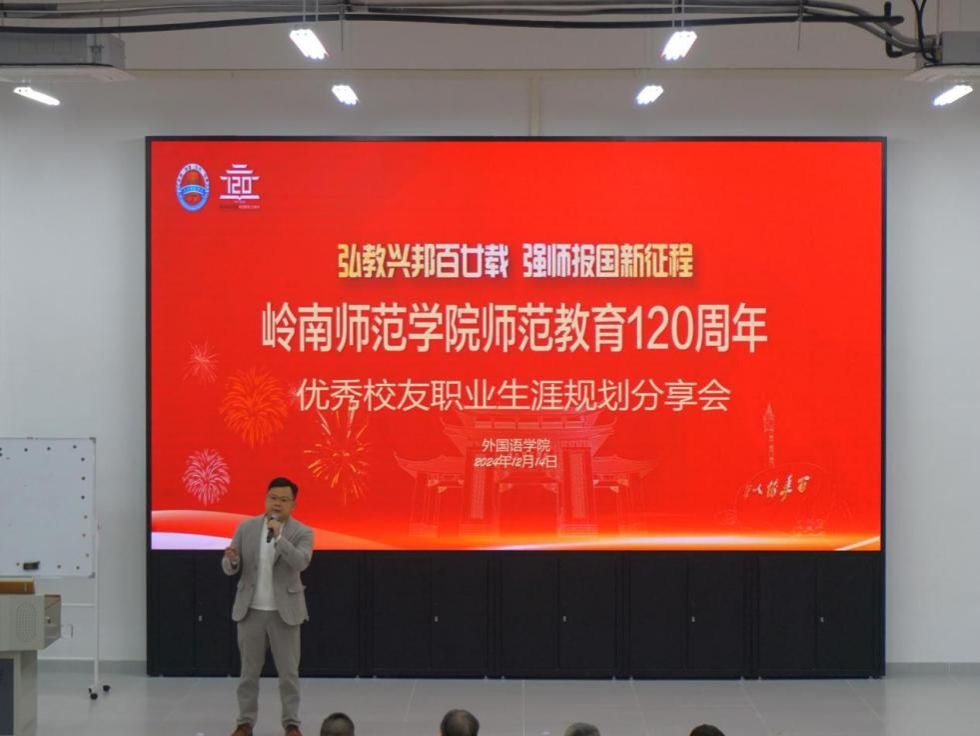 1991届英语专业校友,阳江市秀达贸易有限公司总经理李大清分享了他从教育领域到国际贸易领域的职业转型之旅。在担任教师期间,他不满足于现状,毅然决然地辞去了教职,投身于充满挑战的外贸行业。他积极参与广交会等国际贸易盛会,不断积累经验,向资深业务员学习,深化自我修养,最终在1999年凭借所学技能和深刻洞察,创立了自己的公司,并引领公司稳健前行。李大清向年轻的师弟师妹提出了宝贵的建议,首先,要对自己有一个清晰的定位,明确自己的职业目标和生活追求;其次,要充分利用英语这一强大的语言工具,拓宽国际视野;最后,要跨学科学习,多元化地吸收知识,以适应不断变化的全球市场。