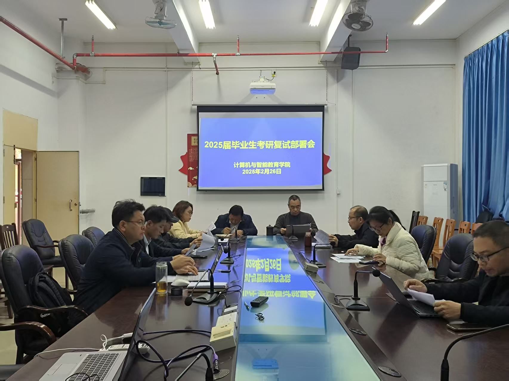 为扎实推进2025届毕业生就业与升学深造工作,明确目标、凝聚合力,近日,计算机与智能教育学院组织召开2025届毕业生就业暨考研复试工作部署会。计算机与智能教育学院领导班子成员、各教学系主任、教师代表及辅导员参加会议,共同分析当前形势,部署重点工作任务,为毕业生高质量就业和升学保驾护航。