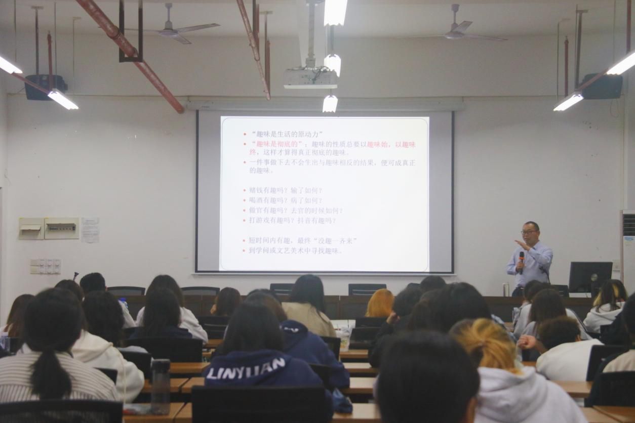 课上,乔志强从近年国家的政策与时事热点入手,强调了新时代我国美育工作的重要性。他以三个代表人物为突破点,深度剖析了王国维以美育培养“完全之人物”;梁启超提倡“趣味主义”审美教育;蔡元培将美育理念付诸教育实践;林风眠、徐悲鸿等画家的成长与美术院校在民国时期的办学与发展。并以此引导同学们感悟前辈继往开来、敢于尝试的精神,启迪美院学子要扎根时代生活、遵循美育特点、肩负起普及美育和传播美育的责任。
