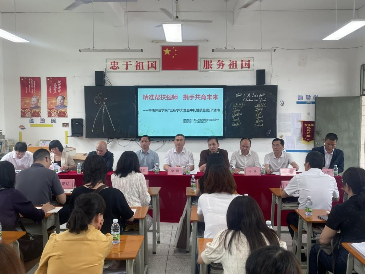 3月28日,教师教育学院负责的“‘三所学校’和县中质量提升”活动(廉江)启动仪式在廉江市石城镇军屯建龙小学开展。会议由廉江市教师发展中心副主任廖穆明主持,廉江市教育局副局长全炳(负责全面工作)出席会议并作总结讲话,岭南师范学院教师教育学院院长王林发教授以及岭南师范学院校长办公室副主任、岭南师范学院驻廉江“双百行动”服务队队长钟召春出席会议。此次活动旨在通过示范教学、座谈交流与专业指导,助力乡村基础教育高质量发展,为“百千万工程”注入新动能。