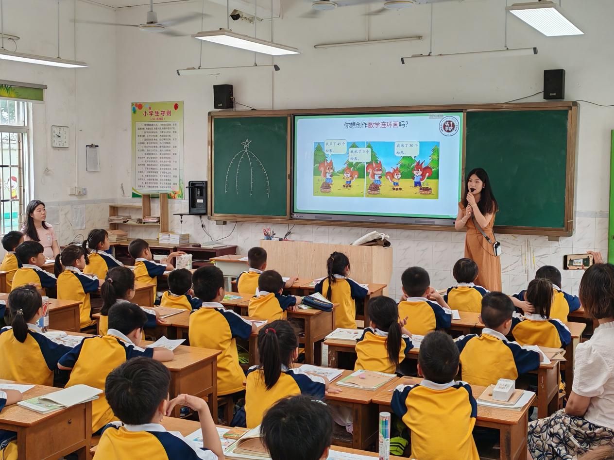 来自湛江市寸金培才学校和湛江市第八小学的优秀教师分别在一年级和五年级执教示范课。陈丹霞老师在一(1)班执教《连环画中的数学故事》,通过趣味情境引导学生探索数学奥秘;副校长王海洵在五(1)班讲授英语《第三单元》,以互动教学模式激发学生语言运用能力。 在示范课点评环节,郑建忠、陈强两位专家表示两节示范课展现出了“深度、厚度、难度”,充分体现了新课标理念,为乡村教师提供了可借鉴的教学范例。