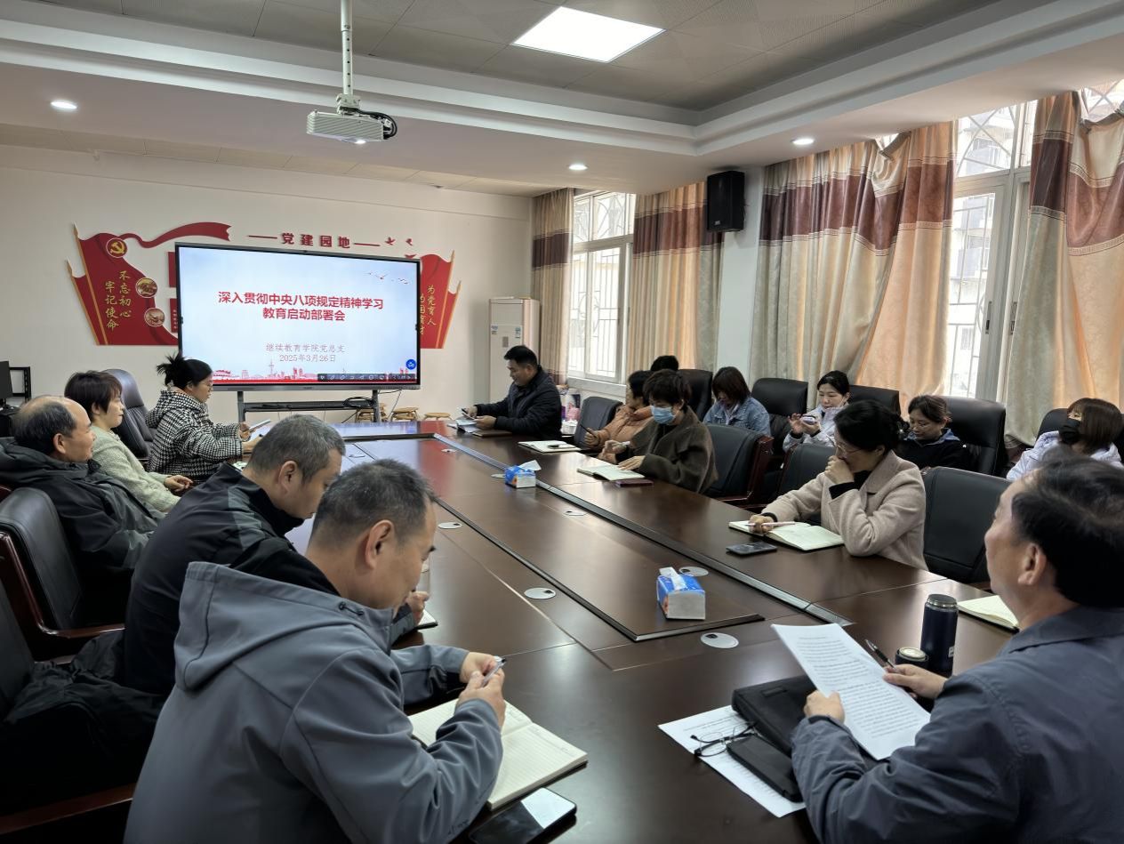 3月26日下午,继续教育学院党总支在椹川校区会议室召开深入贯彻中央八项规定精神学习教育部署会,会议由学院党总支书记、院长曹巧主持,全体党员及教职工参加。