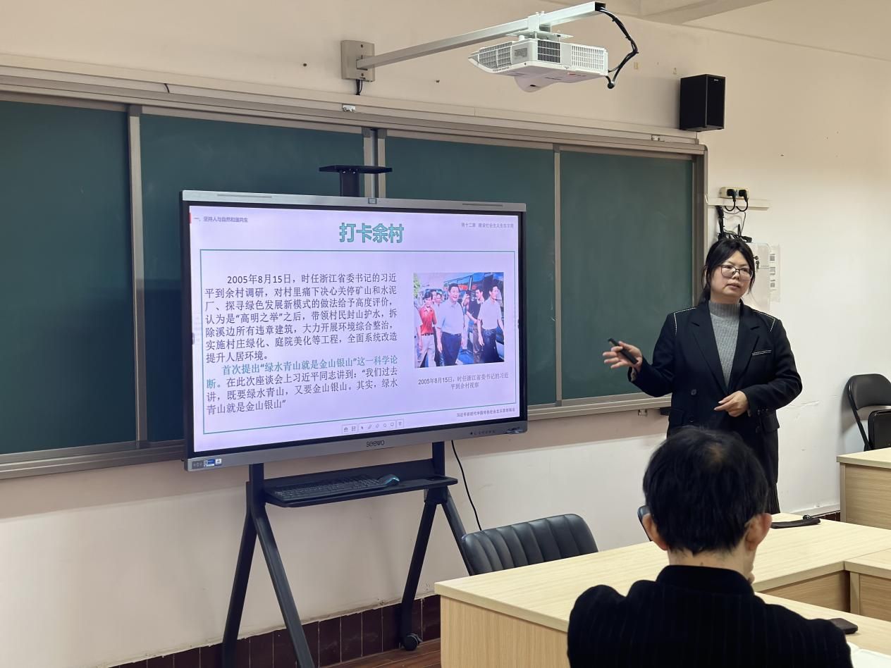 选拔过程中,三位教师分别展示了扎实的教学基本功和独特的教学风采。马克思主义学院老师罗成燕以《习近平新时代中国特色社会主义思想概论》第十二章第二节“绿水青山就是金山银山”为主题,通过了解绿水青山就是金山银山关系的发展变迁史,理解绿水青山就是金山银山的关系,深入阐述了绿色发展理念的重要性和实践路径。马克思主义学院老师龙琪秀讲授了“马克思主义基本原理”课第一章第二节“否定之否定规律”,通过生动的AI教学案例和深入浅出的讲解,将抽象的哲学原理清晰地呈现给大家,引导大家深刻理解事物联系和发展的基本规律。马克思主义学院老师彭东丽则围绕《习近平新时代中国特色社会主义思想概论》”第一章第一节,“中国特色社会主义是历史和人民的选择”展开讲授,以丰富的历史资料和严谨的逻辑论证,生动诠释了中国特色社会主义道路的必然性和正确性。