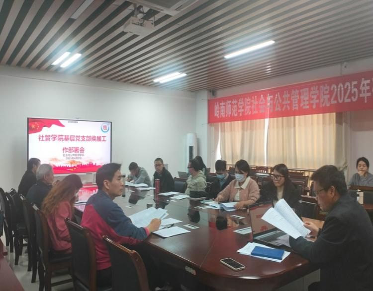 4月2日,社会与公共管理学院党委在第五教学楼D303-2召开基层党支部换届工作部署会。会议由学院党委书记冯亮如主持,学院党委委员、各基层党支部书记与支委出席本次会议。