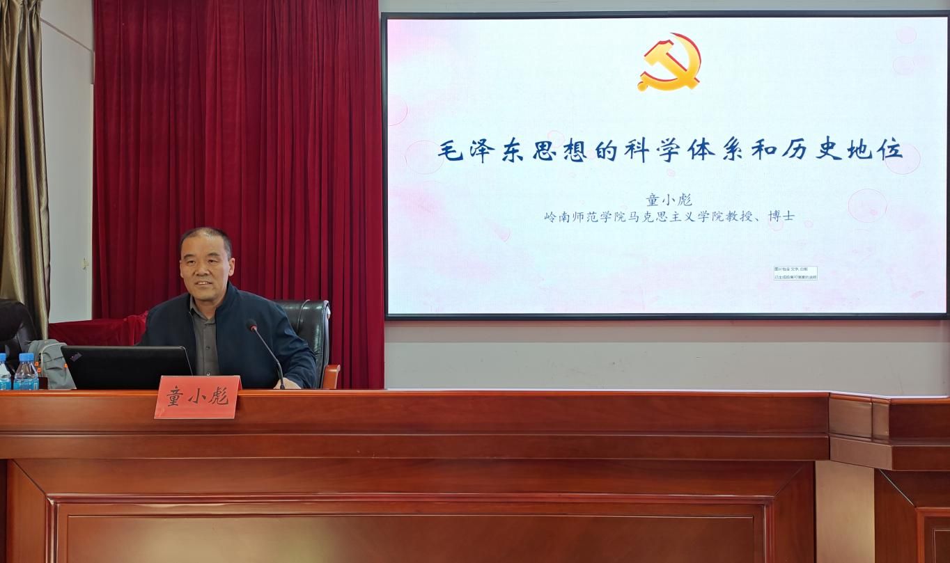 4月7日,岭南师范学院马克思主义学院童小彪教授受邀为珠海斗门区委党校中青班作了题为“毛泽东思想的科学体系和历史地位”的专题报告,强化学员理论武装,推进“双百行动”走深走实。