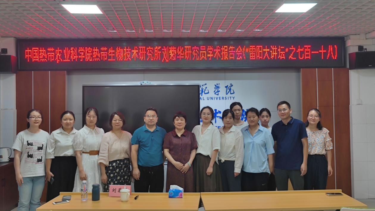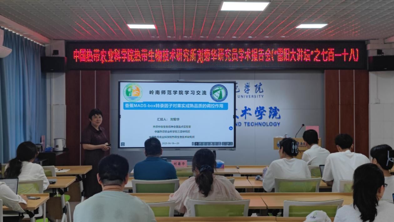 6月20日,生科院特邀中国热带农业科学院热带生物技术研究所研究员、博士生导师、国家香蕉产业技术体系品种改良岗位科学家、海南省“领军人才”刘菊华作客“雷阳大讲坛”,作题为《香蕉MADS-box转录因子对果实成熟品质的调控作用》的专题讲座。讲座由生科院院长刘锴栋教授主持。