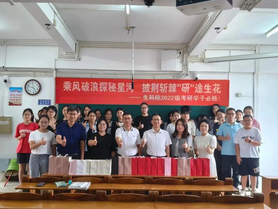 七月盛夏,骄阳似火,生科院2026届毕业生们留校奋战,全力冲刺升学深造。7月29日,生科院党委书记李发武、院长刘锴栋、党委副书记覃静君、副院长王锂韫、副院长孙余丹、行政副院长章晶晶及班主任袁柳娇代表学院来到考研教室,为留校学生送去暖心关怀与丰富慰问品,让大家在紧张备考中感受到学院的关心与温暖。