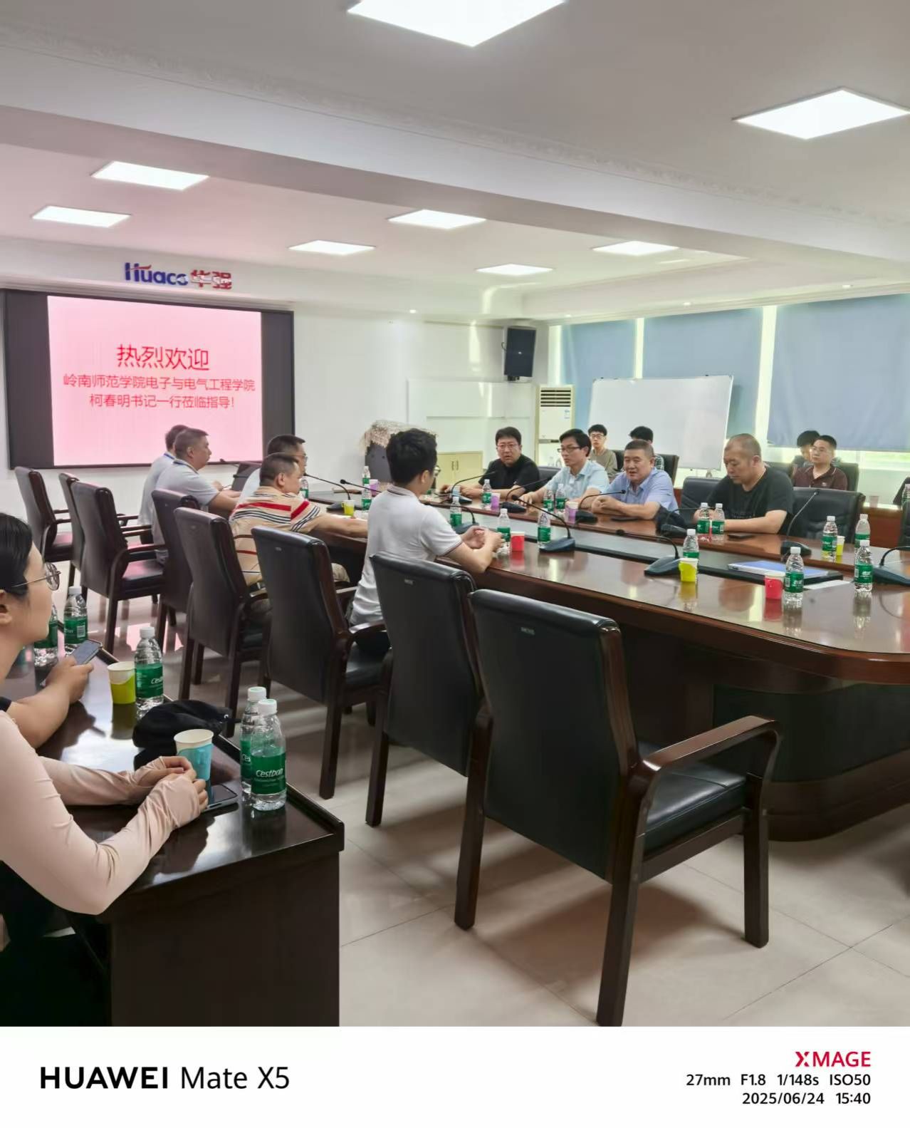 在华强电器集团,教职工参观了智能数字化生产线,了解到该企业作为省知识产权示范企业,拥有51项有效专利,其自主研发的IH智能电饭煲技术打破日韩垄断,产品畅销全球50多国,并通过产业协作推动廉江家电产业集群升级。电子院与华强电器集团联合建立广东省博士工作站,桑海涛、王润涛等博士入驻华强智能小家电实验室,开展科学研究工作。