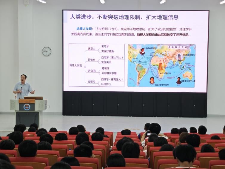 报告中,吴志峰以“地理信息”为核心,系统梳理了地理信息科学的发展脉络与时代变革。他从地理信息的基本概念切入,结合人类文明史中信息传播方式的演变,生动阐述了地理信息在人类认知世界、突破地理限制过程中的重要作用。吴志峰指出,地理信息科学虽是一门年轻学科,但其内涵已从早期的“技术系统”逐步发展为融合“科学”与“服务”的综合性领域,特别是在人工智能时代,地理空间智能正成为核心竞争力。他还结合自身教学与科研经验,分析了当前GIS人才培养面临的挑战与机遇,强调“地理学思维”与“信息技术能力”并重的重要性,鼓励同学们打牢专业基础、积极适应“GIS+”与“AI+GIS”融合发展的新趋势。