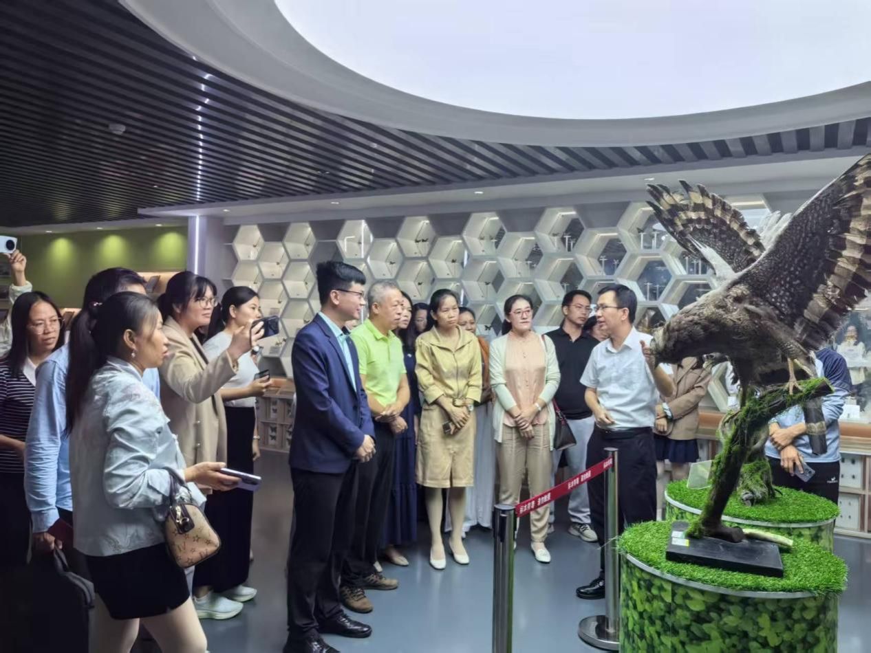 上午 ,刘锴栋教授带领全体学员前往教四 D 八楼的生科院科普馆参观。馆内丰富的动植物标本、先进的生命科学展示设备,以及围绕“雷州半岛生态保护”“红树林湿地研究”等地域特色主题的展览内容,让学员们直观感受到生命科学的魅力。不少学员表示,科普馆的展品与教学内容高度契合,未来可将其作为学生实践教学的优质资源,进一步丰富课堂形式。