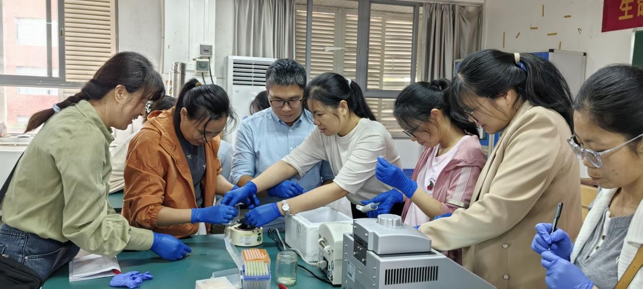 在讲座和参观结束后,学员们分组前往生科院实验室,分组开展“PCR 技术及原理”、“琼脂糖凝胶电泳的制备和电泳观察”、“重组质粒的连接、菌液转化与涂板”等生物学核心实验项目开展操作。实验室配备了专业指导教师,从实验原理讲解到操作步骤示范,全程为学员提供精准指导。学员们亲自动手操作,深入掌握实验技能,同时围绕 “如何将高校实验室资源转化为中学教学实践素材” 展开热烈讨论,形成了多项实用的教学思路。