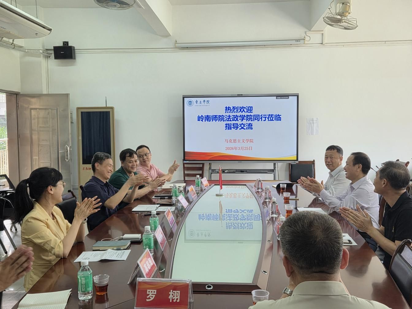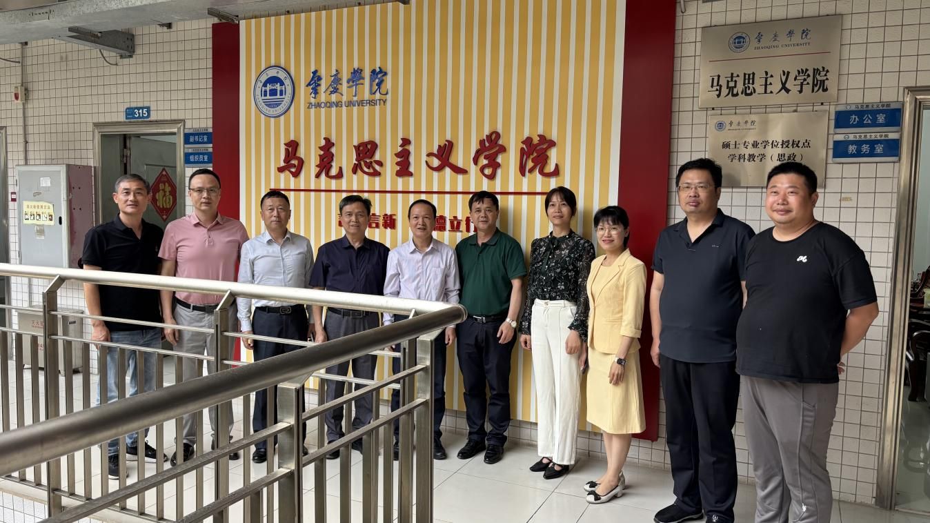 3月25日下午,法政学院院长刘鑫淼、副院长娄伟、思想政治教育系主任谢锦江、办公室主任邓剑辉一行 4 人,赴肇庆学院马克思主义学院开展专题调研和学习交流,重点围绕师范类专业认证、学科团队建设、学科思政硕士点建设等核心工作取经问道。肇庆学院马克思主义学院党委书记侯玉基、院长曹和修等学院全体领导班子及相关教师热情接待并出席交流座谈会。