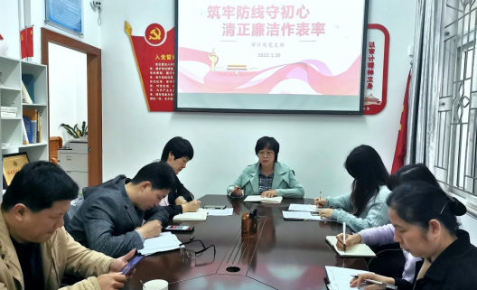 党支部书记颜日娟以“筑牢防线守初心,清正廉洁担使命作表率”为题,带头讲授了第一堂党课。党课结合审计工作的实际,深入浅出解读了中国共产党第十九届中央检查委员会第六次全体会议精神,并强调指出审计监督是党和国家八大监督体系之一,作为审计人员要坚决按照习近平总书记指出的“要保持反腐败政治定力,不断实现不敢腐、不能腐、不想腐一体推进的战略目标”,保持全面从严治党永远在路上的清醒认识,在思想上要时刻自省,警钟长鸣,在行动上要严格执行审计“四严禁”“八不准”工作纪律,坚持原则,敢于担当,坚决同一切腐败行为作斗争。为了让大家深刻认识党风廉政建设的重要意义,增强党风廉政建设的责任感,全处人员层层签订了党风廉政建设责任书,作出了清正廉洁奉公的庄重承诺,观看了反腐警示教育纪录片《零容忍》。