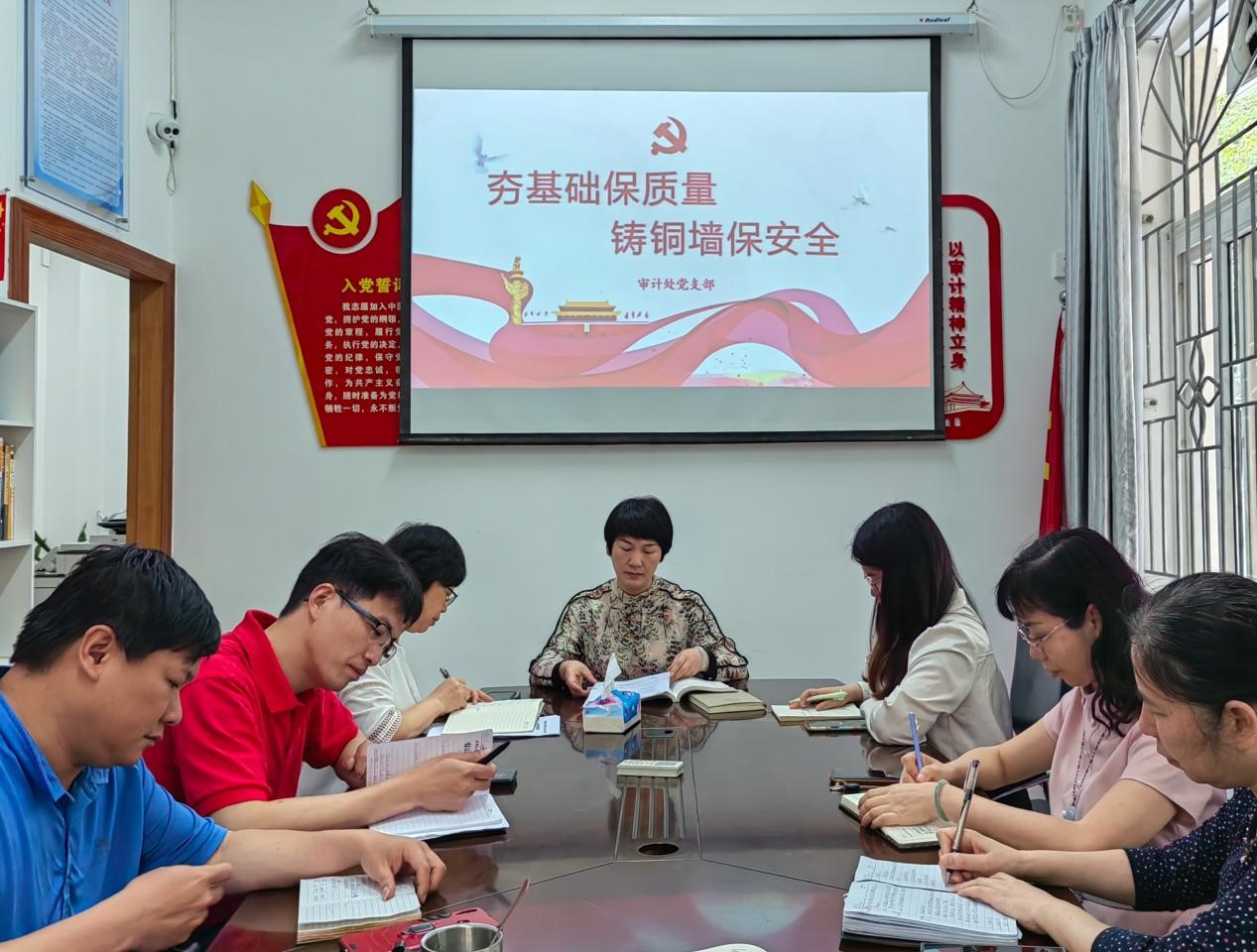 支部副书记杨娴菲则在第二季度的党课中以“夯基础保质量,铸铜墙保安全”为主题,带领全处人员深入学习领悟“两个确立”的决定性意义,指出审计是一项严肃、严谨的工作,要提高审计工作质量,过硬的政治素养、端正的态度作风、扎实的专业能力缺一不可,审计人员应牢牢把握正确的政治方向,不断提高政治判断力、政治领悟力、政治执行力,坚决做到“两个维护”,不折不扣落实好上级各项决策部署,在履职尽责中践行使命担当。随后,全体人员结合相关审计制度的要求,就如何完善审计过程记录,提高审计底稿质量,规范审计档案管理等问题进行了探讨。