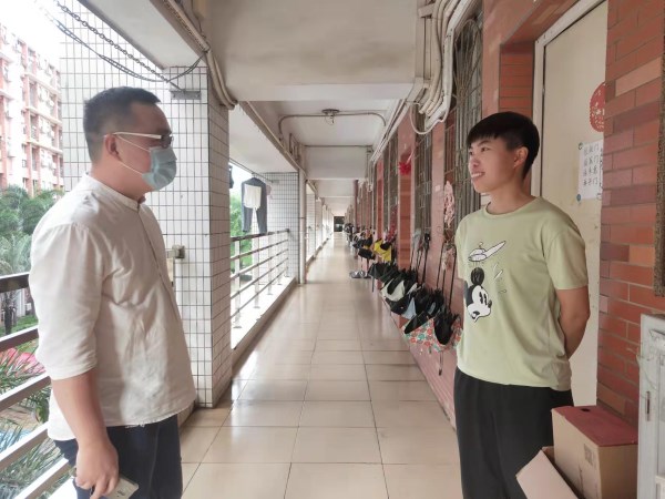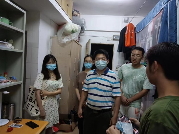 受当前湛江市新冠肺炎疫情严峻形势影响,根据疫情防控管理条例与要求,学校自5月9日始实行封闭式管理,并开展线上教学。为进一步落实学校疫情防控工作,关注学生心理状态、思想动态,传递学校温暖。文学与传媒学院教师下沉至学生宿舍,深入了解学生学习生活状态,党委副书记梁碧斐带领各个年级班主任与辅导员进行宿舍走访工作,实地了解学生的学习生活情况。