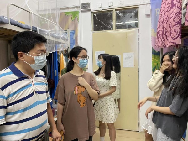走访期间,学院教师深入宿舍与学生们亲切交谈,关心问候学生身体状态,了解宿舍卫生、疫情防控情况,并仔细询问同学们在宿舍的线上学习与生活情况。其中,学院教师重点关注同学们在封控期与线上学习过程中遇到的问题与困难,并进行针对性的答疑与帮助,同学们积极回应给予反馈。在融洽的师生交流中,老师们耐心倾听并解答学生反馈的问题,不断给予同学们精神鼓励与支持。