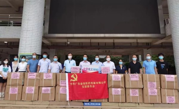 众志成城战疫情,校企合作在行动。当前,新冠疫情牵动着每一个人的心,学校作为人员密集的场所,对口罩、消毒液等防疫物资需求量较大。在了解到有部分学生特别缺乏防疫口罩的情况后,化学化工学院领导班子积极谋划,主动作为,联系到校企合作共建单位广东金安医药发展有限公司。5月14日,在抗疫关键时期,广东金安医药发展公司吴国总经理一行莅校捐赠来一批抗疫物资(其中10箱32000个口罩捐给学校防控办;10箱32000个口罩捐给化学化工学院师生),向校院伸出援手,以捐赠防疫物资方式加入到战“疫”中。化学化工学院党委书记赵海波、院长周小松、党委副书记李凤炼、副院长周中流、教工第三党支部书记罗金、办公室主任莫智明、辅导员杨肖慧及学生会主席团成员出席本次抗疫慰问物资捐赠仪式。