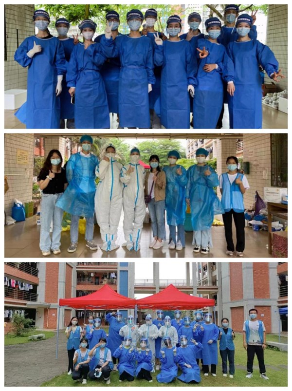 21级烹饪国际2班钟乐表示很荣幸能成为防疫志愿者,成为以传递爱心、志愿服务、乐于奉献、不求回报为宗旨的志愿团队成员之一。本次志愿活动从早上的九点半到下午一点,短短几个小时,她深刻体会到医疗工作者的不易,在炎热的天气里,从头武装到脚,隔离服隔绝病毒也隔绝空气,几乎是让人喘不过气的闷热加上繁琐的工作,让最后脱下隔离服的她汗流浃背。隔离服隔离病毒,却没隔离温情,在她进行志愿服务的期间,同学们都非常配合,核酸检测工作顺利开展,苑区老师、楼委干部也成为我们工作的助力剂,这些都是让她能够坚持下去的动力。