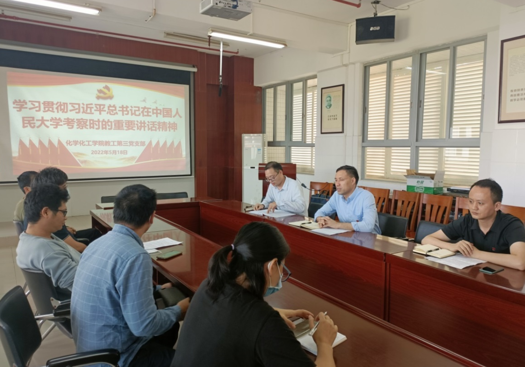 5月18日下午,我院教工第三党支部召开专题学习会,深入学习领会习近平总书记在中国人民大学考察时的重要讲话精神,汲取智慧力量,强化使命担当。会议由党支部书记罗金主持。