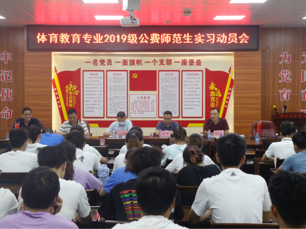 5月21日,体科院于体育馆会议室召开体育教育专业2019级公费师范生实习动员会。体科院副院长王海涛(主持)、校教务处副处长黄桦、体科院副院长梁立启、体育系副主任韩金勇、班主任王志刚、孙国宝等指导老师以及体育教育专业2019级公费师范生参加会议。梁立启主持会议。