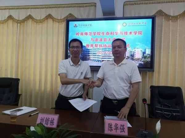 最后,刘锴栋副院长(主持)与遂溪县大成中学陈华强校长签署了《岭南师范学院与遂溪县大成中学基础教育高质量发展结对帮扶协议》,全场报以热烈的掌声,两校将依据协议约定,携手合作共进,共圆教育梦想。