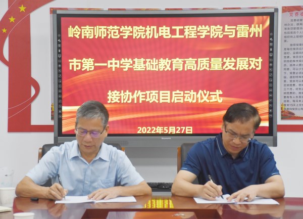 5月27日,为深入贯彻中央关于建设高质量教育体系的决策部署,全面落实省委、省政府关于推动基础教育深化改革高质量发展的工作要求,推进《岭南师范学院赋能基础教育高质量发展行动方案》,全面实施“三成四化”筑峰工程,紧密对接粤西基础教育高质量发展的实际需求,机电工程学院院长弓满锋、副院长苏财茂、党委副书记黄展、各系主任、教师代表等一行赴雷州市第一中学进行基础教育高质量发展对接协作项目合作洽谈,并与雷州市第一中学校长蔡日春、副校长黄光宙等领导老师深度研讨交流,签署了结对帮扶协议。
