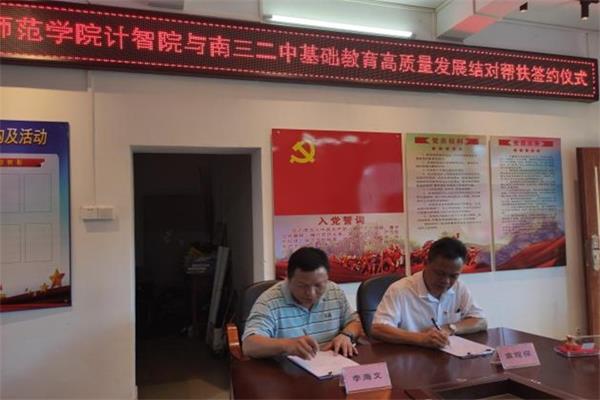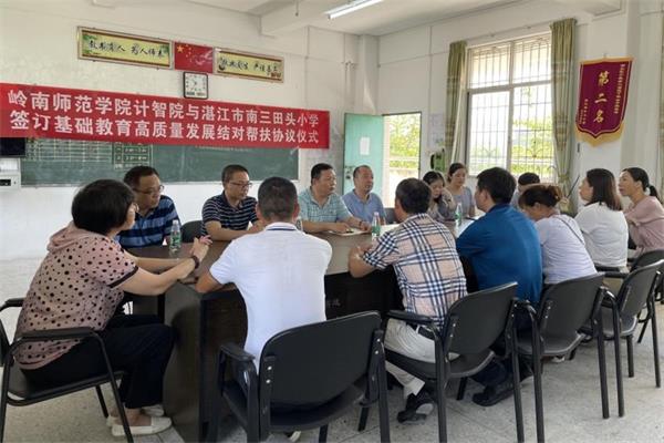 岭南师范学院计算机与智能教育学院对湛江市坡头区南三镇第二中学、白沙小学、田头小学将开展为期5年的基础教育高质量发展结对帮扶工作,学院将根据当地教育特色,充分发挥学院在管理、人才、资源和专业特色等方面的优势,以提高海岛学校的教育信息化管理能力和应用能力为核心,切实推进帮扶工作出成效,学生群体享实惠,推动高等教育反哺基础教育,助推海岛学校基础教育全面高质量发展。