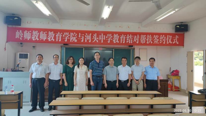 5月30日教师教育学院副院长(主持)王林发、副院长陈小亘、王碧静一行赴遂溪县河头中学举行结对帮扶签约仪式。河头镇人民政府副镇长黄尤杰、河头中学校长郑培辉出席本次活动。仪式由中共河头镇镇委副书记、驻河头镇帮扶村工作队队长秦红明主持。