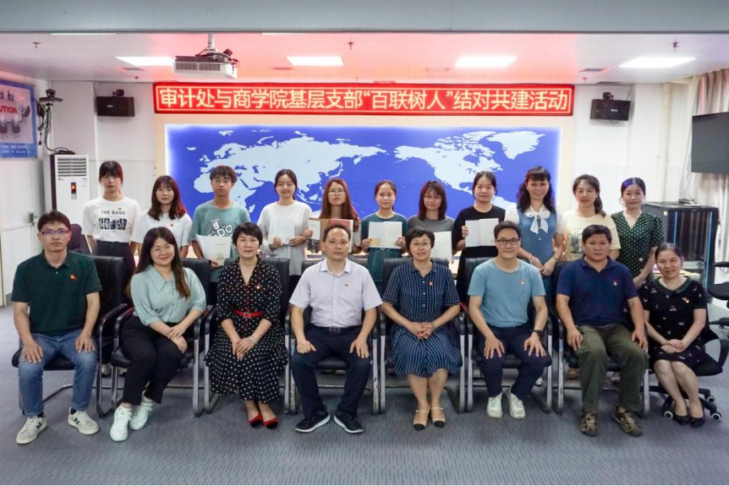 2022年5月30日,审计处党支部与商学院学生第四党支部在第四教学楼会议室举行了“百联树人”结对帮扶共建活动启动仪式。商学院党委书记何等浩、审计处全体人员、结对学生及党员学生代表出席活动。