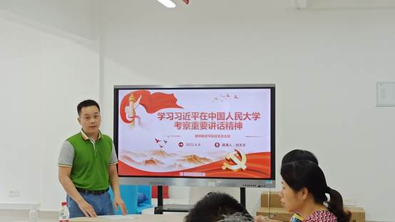 刘天平带领所有党员开展了第一议题的学习。接着他传达了廉洁文化进校园的重要通知精神,并带领大家学习了违反师德师风的警示教育案例。随后,刘天平作习近平在中国人民大学考察重要讲话精神的主题党课,从教育与国势的关系、教育的根本问题、高校立身之本等方面展开学习。