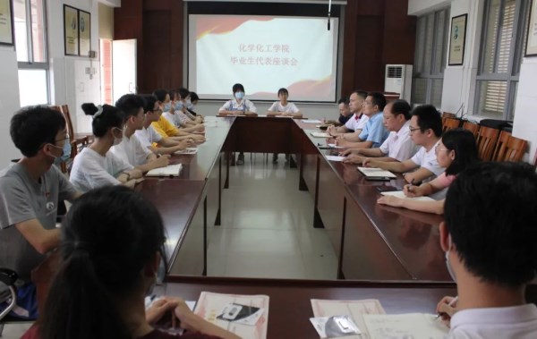 2022届毕业生离校前夕,化学化工学院于燕雷楼D栋305室举行毕业生党员代表座谈会。学院党委书记赵海波,院长周小松,党委副书记李凤炼及毕业班班主任代表、辅导员代表、毕业生党员代表等参加会议。