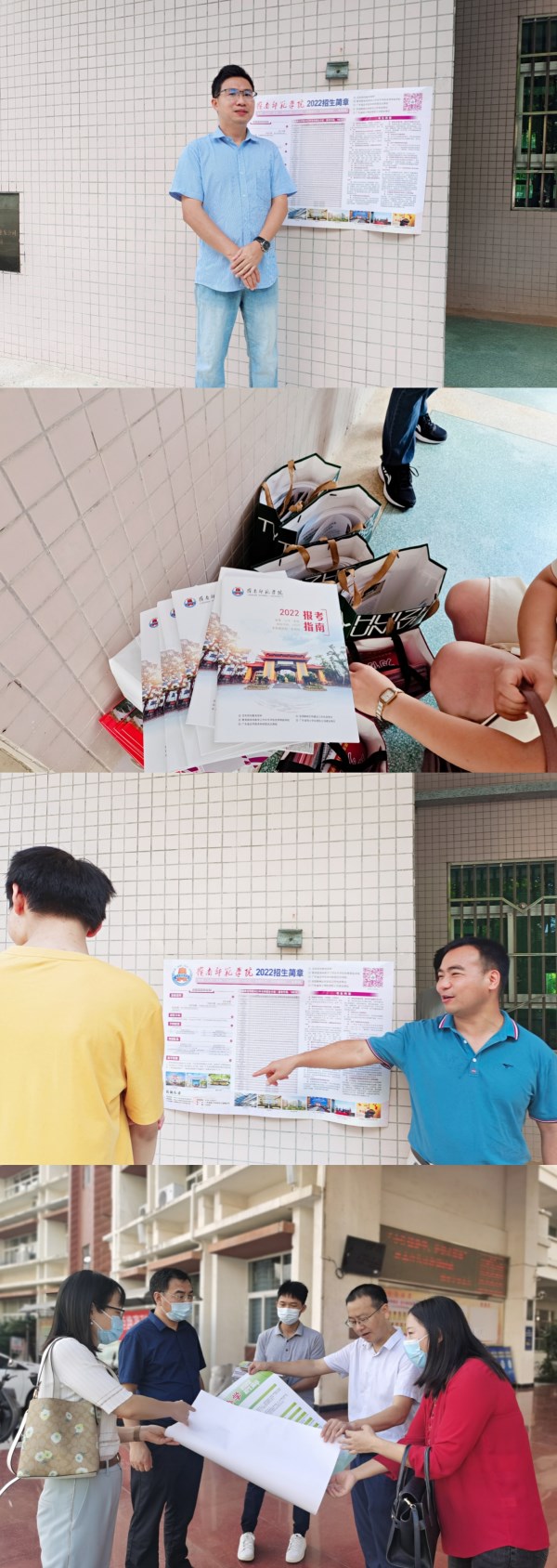招生宣传是高校招生工作的重要环节,为进一步加大招生宣传工作力度,增强工作成效,6月23-25日,机电工程学院党委副书记黄展、专业负责人王广斌教授、机电工程系系主任夏小群等一行6人赴惠州市华罗庚中学、惠东县高级中学、博罗县博罗中学等三所中学进行招生宣传,张贴宣传海报6张,推送电子招生简章100余次,派发招生宣传简章1000余张。