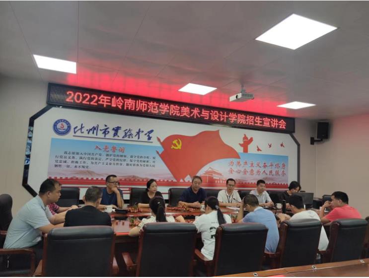 美术学院今年的招生取得突破,主要利益于认真做好招生宣传。7月1日,美术与设计学院招生宣传队开始了对茂名、电白、与化州三地的招生宣传旅程,此次招生宣传的目标学校包括化州实验中学、化州第一中学、化州第二中学、化州第三中学、茂名电海中学、茂名第一中学等。学院副院长李吾铭和各教学系主任李强、沈晶照、谢圣明、谢东以及辅导员骆宇虹等人参加了此次生源地招生宣传活动。