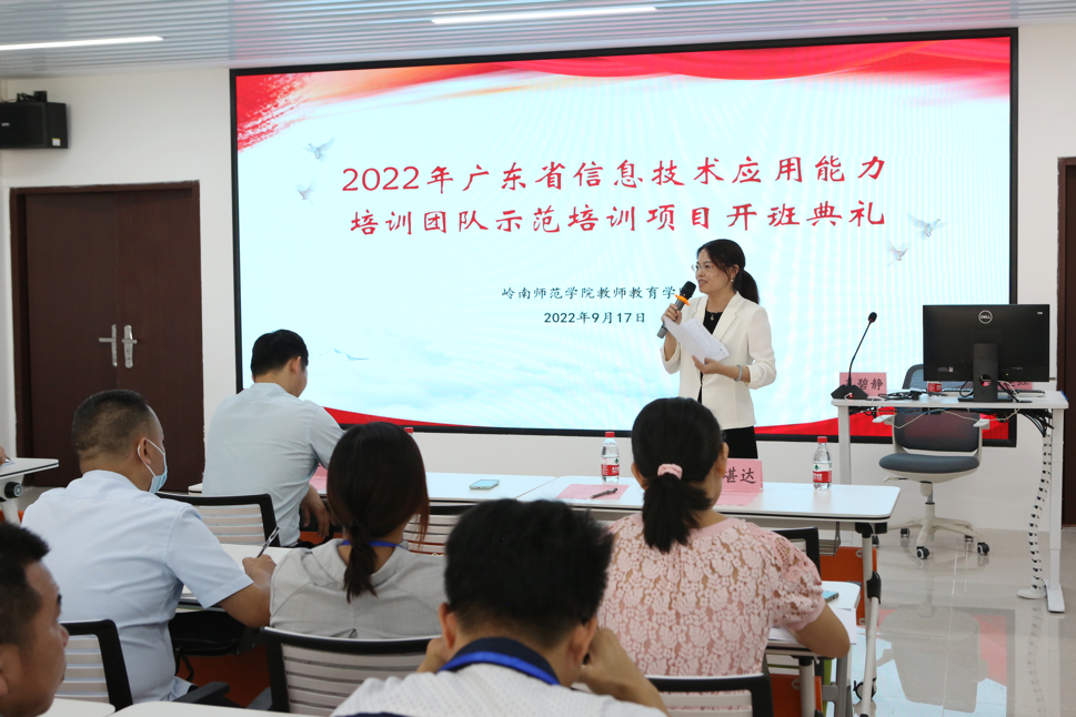 9月17日上午,2022年广东省信息技术应用能力培训团队示范培训项目开班典礼在第五教学楼A612室顺利举行。典礼由岭南师范学院教师教育学院办公室副主任潘湛达主持,岭南师范学院教师教育学院副院长王碧静出席典礼并作讲话。