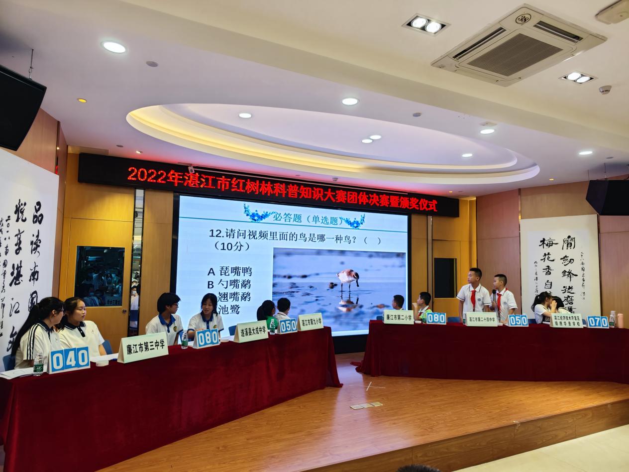 为了贯彻习近平生态文明思想,落实落细湛江市建设“红树林之城”工作部署,打响红树林之城文化品牌,进一步引导湛江中小学生及市民公众积极参与到红树林之城的建设中来,共同科学保护红树林。我院于2022年9月17日成功举办湛江市红树林科普知识大赛团体决赛暨颁奖仪式。