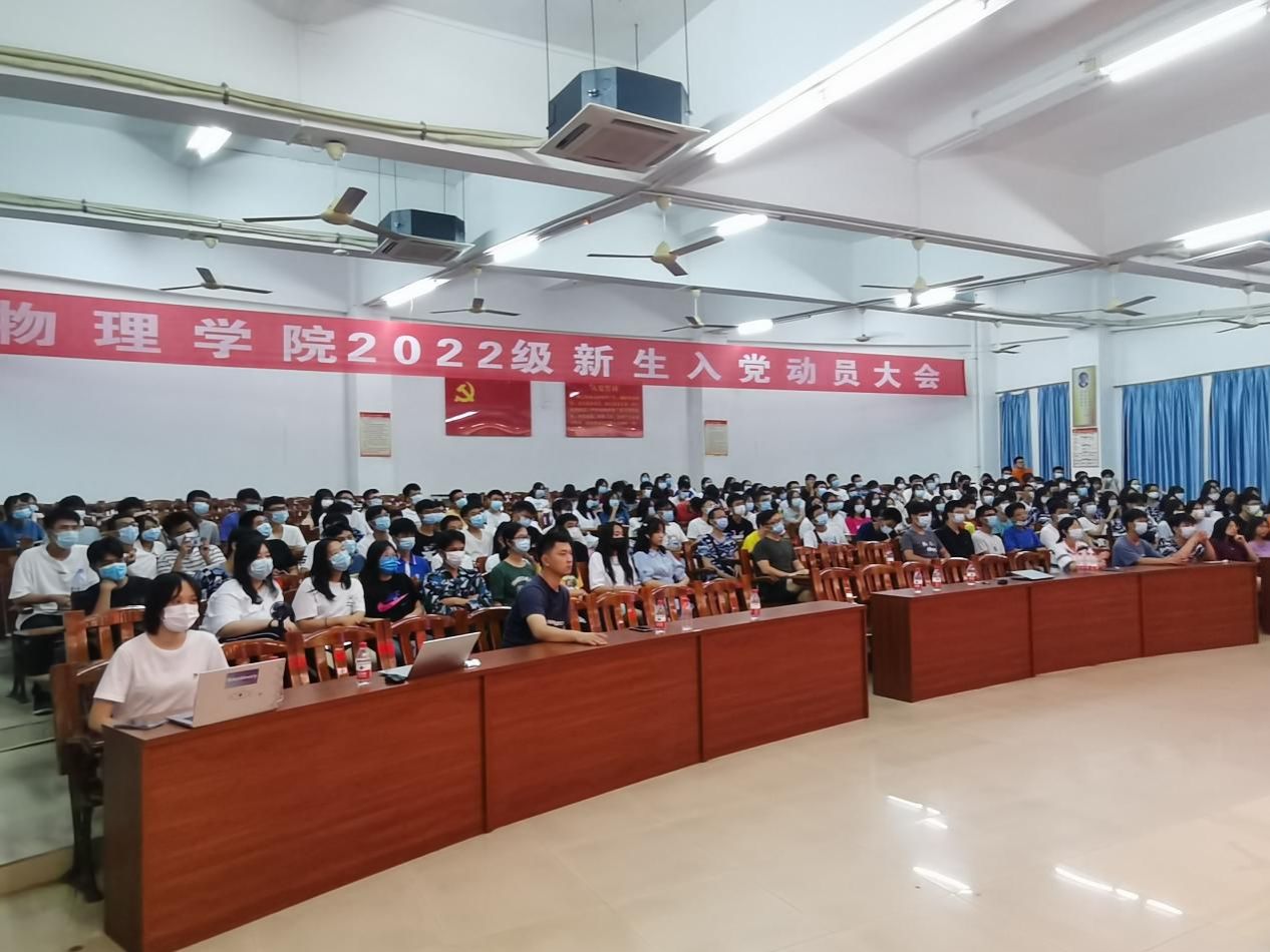 2022年9月19日晚,物理科学与技术学院于弘雷楼211室举行了2022年秋季学期“思政第一课”暨新生入党动员大会,学院党委书记陈碧琼、副书记梁伟民、全体辅导员和2022级全体新生参加,曾思境老师主持会议。