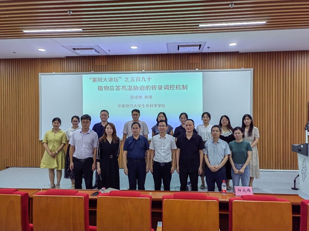 6月29日下午,生科院、科研处在第五教学大楼A102举办“雷阳大讲坛”之五百九十期专题讲座,邀请华南师范大学生命科学学院院长阳成伟教授作题为《植物应答高温胁迫的转录调控机制》的学术报告。生科院院长刘锴栋、副院长王锂韫、副院长孙余丹、生科院骨干教师和部分本科生参加了学术报告会。