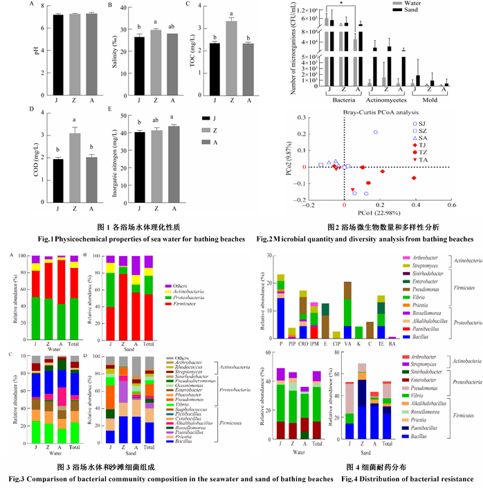 抗生素的大量使用使细菌耐药风险上升为全球卫生安全问题,日益受到人们的重视。在滨海旅游业繁荣发展的态势下,公共卫生健康成为游客首要关注点。考虑到抗生素耐药菌和抗生素耐药基因的扩散对人体造成的潜在危害,基于微生物耐药性对游客健康的威胁,开展湛江滨海浴场细菌耐药性进行研究具有重要意义。该研究对湛江海滨浴场水体理化性质、微生物数量和药敏试验等进行了分析,探究湛江三处滨海浴场环境中细菌多样性和耐药性,为湛江滨海浴场及周边的公共卫生提供参考。