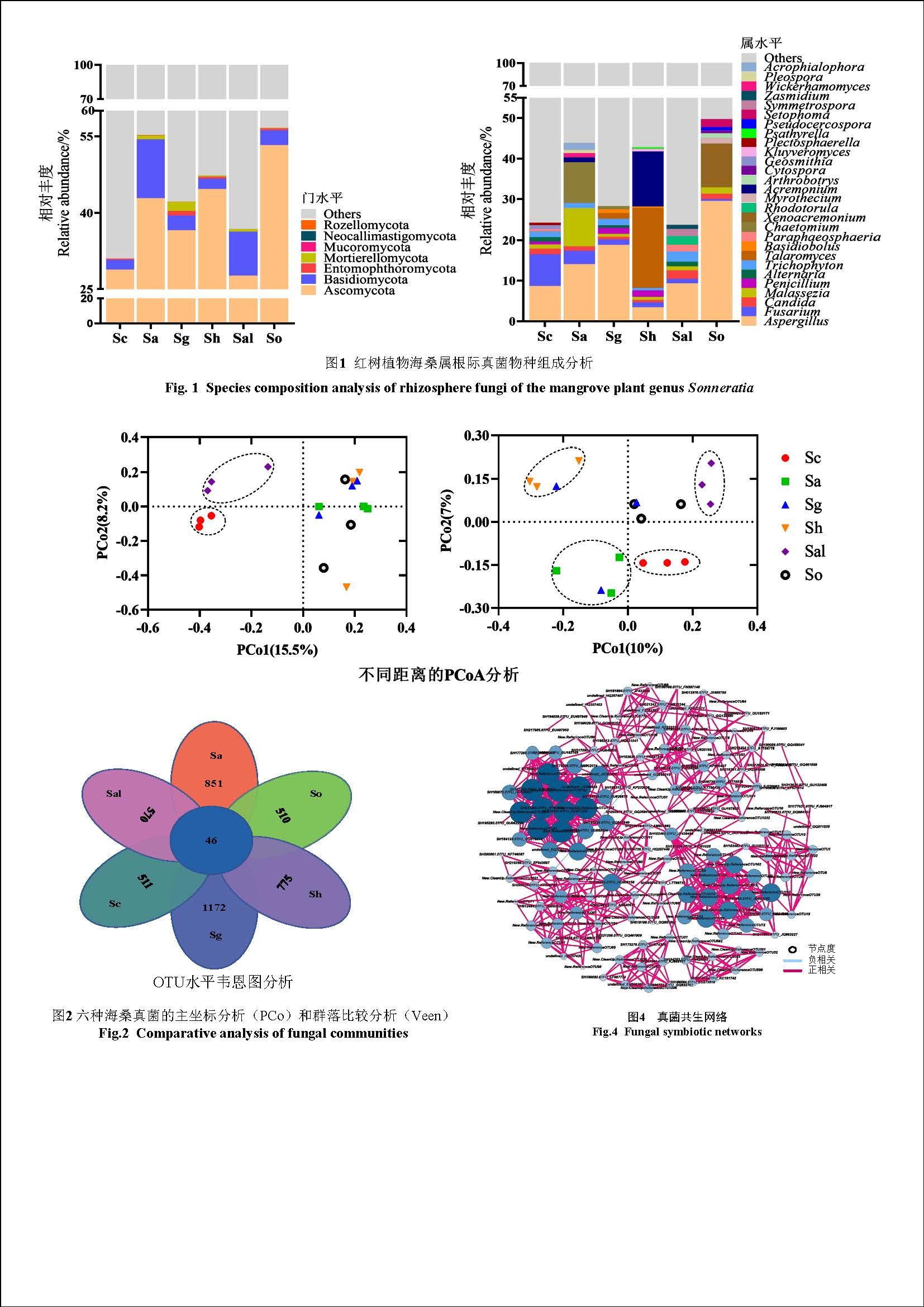 真菌多样性是植物根际生态系统的重要构成与植物健康稳定的重要指标。海桑属是红树林中重要的乔木型树种,树形高大,几乎遍布红树林各种类型的潮间带,在红树林生态系统中占有重要地位。目前关于海桑属植物,我国学者主要从木材结构比较解剖、木材结构及其系统演化意义、叶片的结构及其生态适应性、孢粉学、形态解剖学、分子标记、遗传多样性等方面做了一系列研究,对影响海桑属红树植物生长发育的根际微生物知之甚少。该研究探究了海桑属红树植物根际真菌的群落多样性规律,并分析了红树植物根际真菌类群的生化功能,为该物种资源保护与合理利用、种群恢复工作提供理论基础和依据。